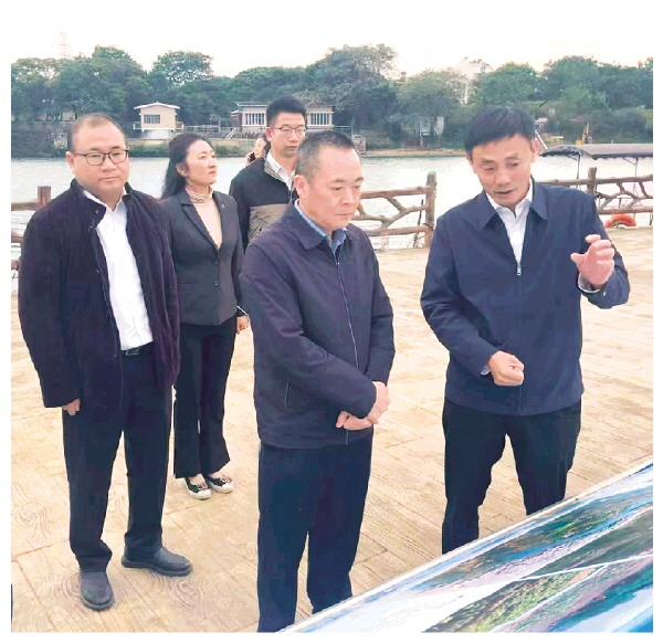 ▲近日,市国资委党委书记、主任赵家维(右二)带队到漓投公司调研。他先后对桂林漓江(南洲大桥—净瓶山桥段)洲岛及沿岸生态修复项目涉及的蚂蟥洲、大小洲,以及环象山水系生态修复及配套产业提升工程项目进行实地考察调研。 蔡云霞 摄