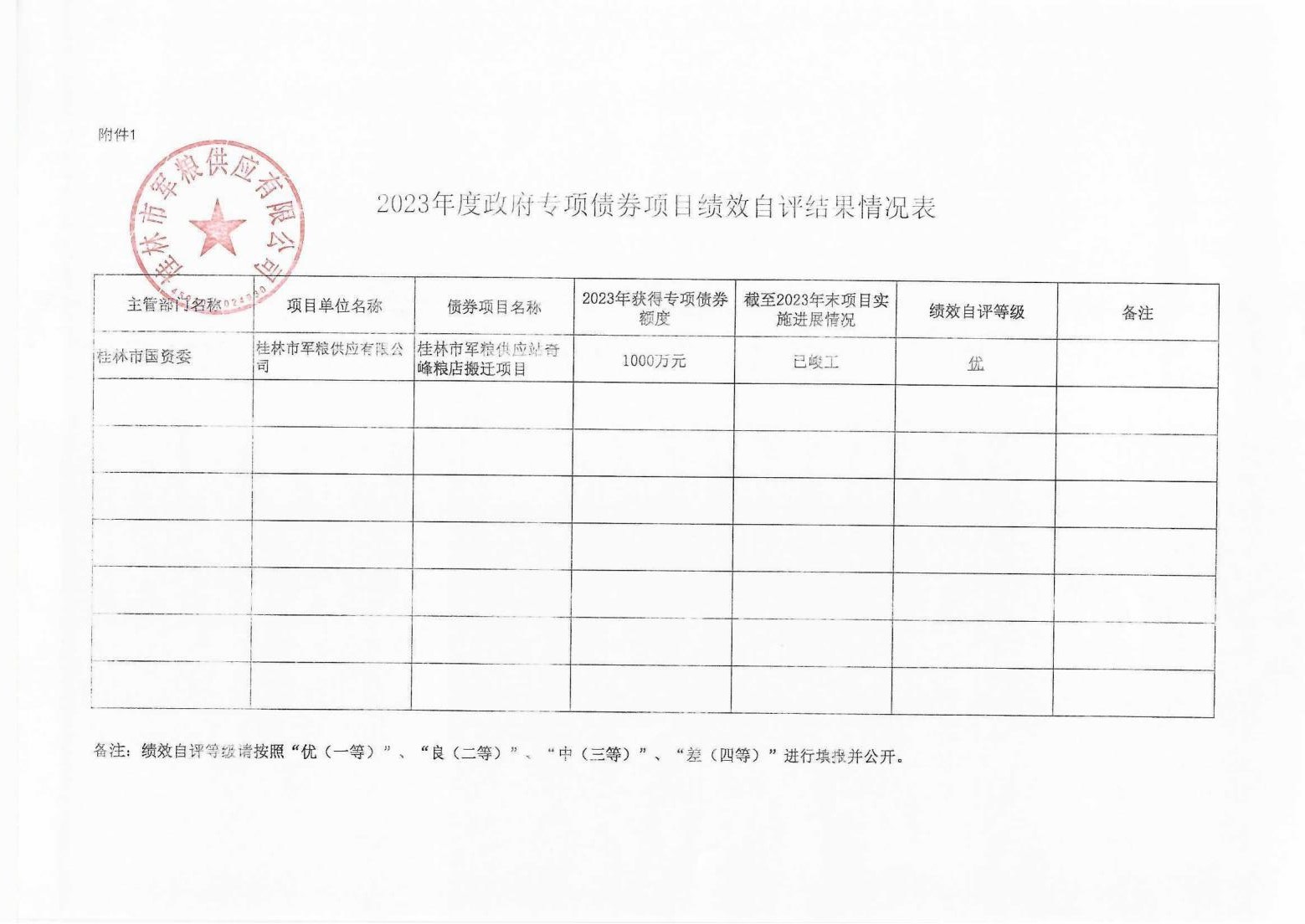 2023年度政府专项债券项目绩效自评结果公开情况表